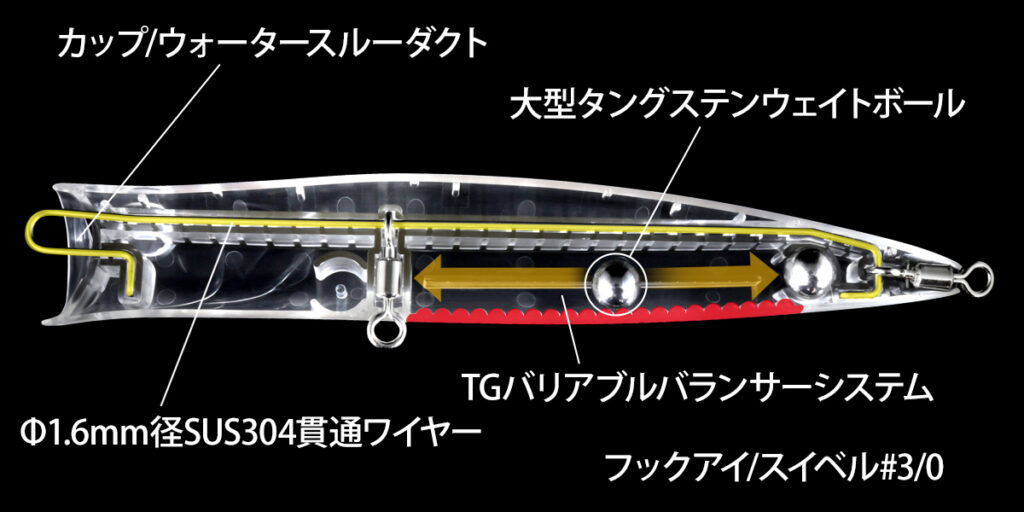 Por supuesto, los conductos de agua a ambos lados de la copa proporcionan un burbujeo estable y reducen la resistencia al tirar, lo que lo convierte en un popper de buceo con capacidades de lances a larga distancia aún mejores.