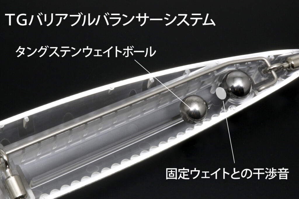 El peso variable del equilibrador, que se mueve libremente a medida que el señuelo cambia de posición, rueda por el riel ondulado, creando un sonido único y vibrante que atrae a una amplia zona.