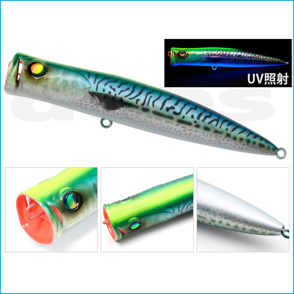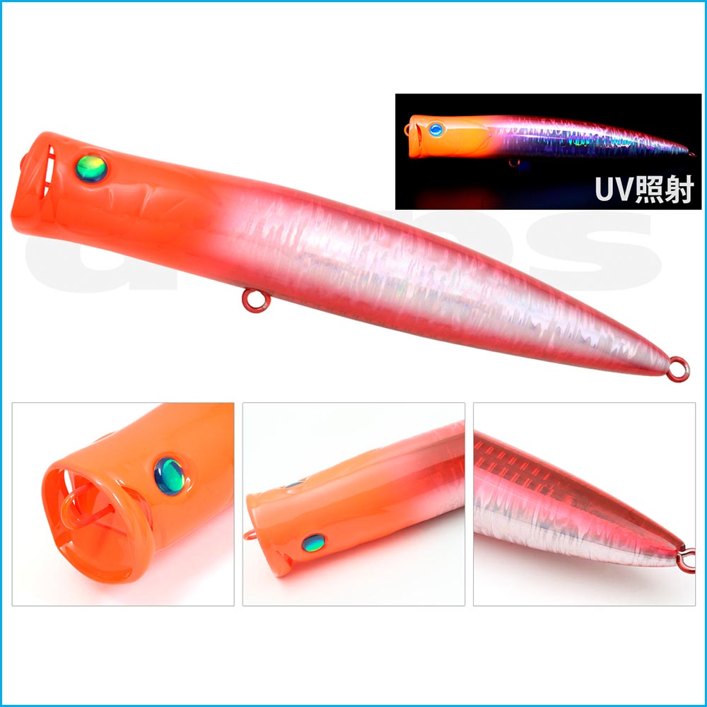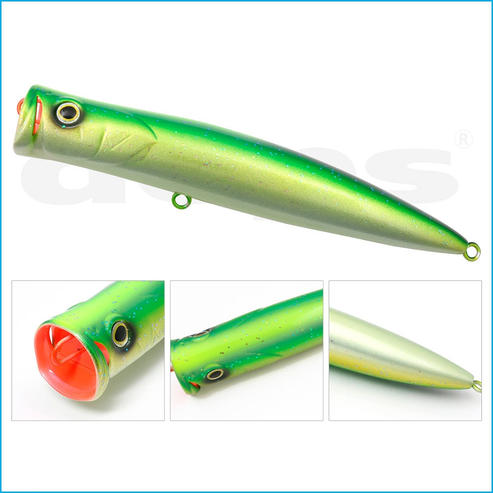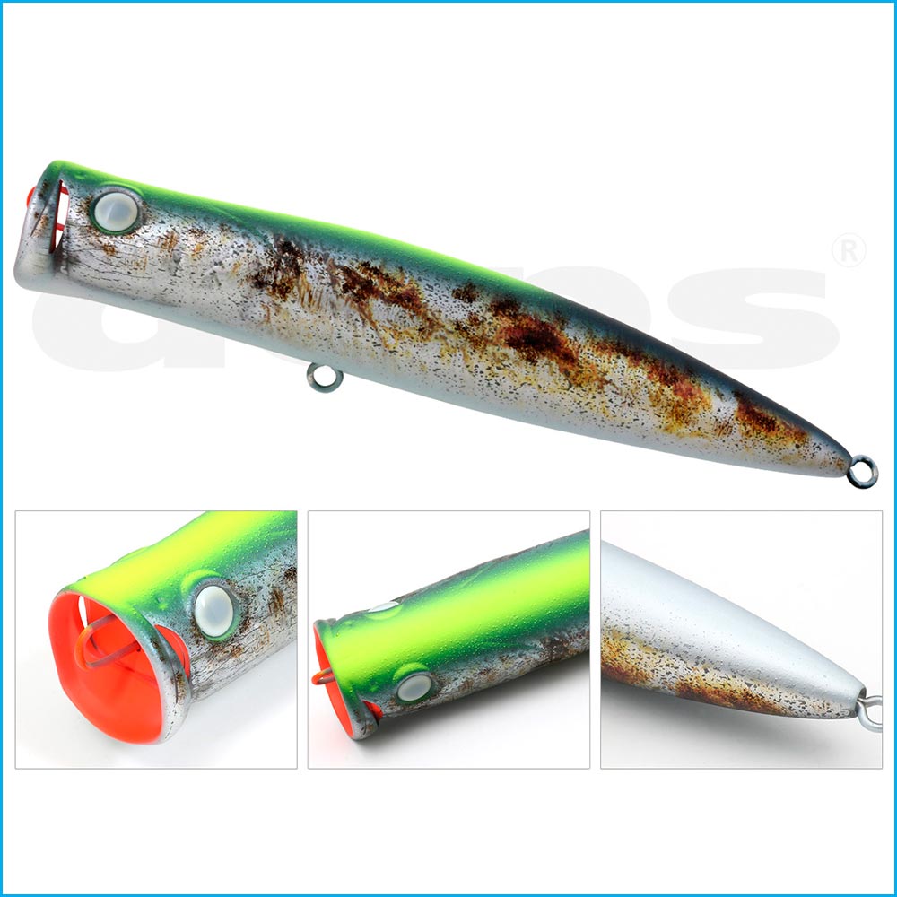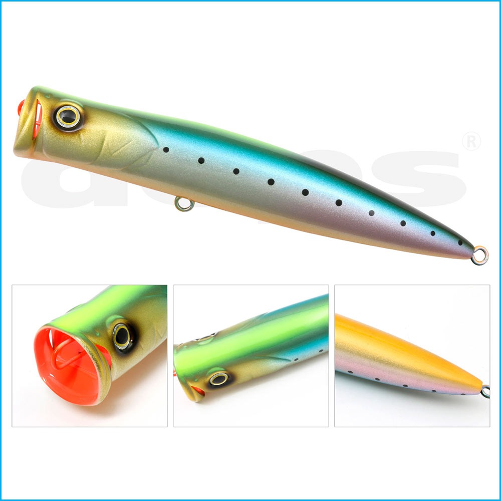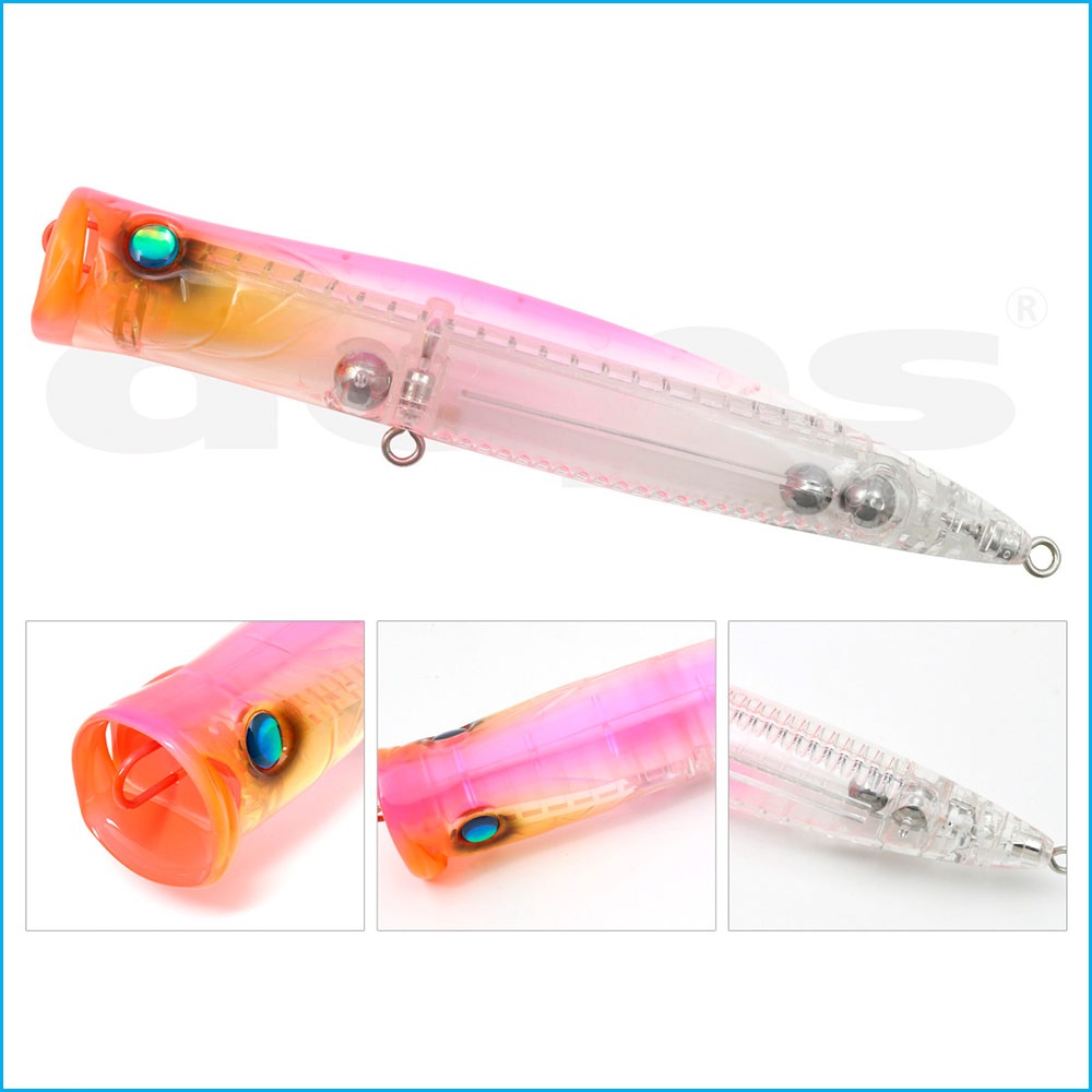 Por supuesto, los conductos de agua a ambos lados de la copa proporcionan un burbujeo estable y reducen la resistencia al tirar, lo que lo convierte en un popper de buceo con capacidades de lances a larga distancia aún mejores.