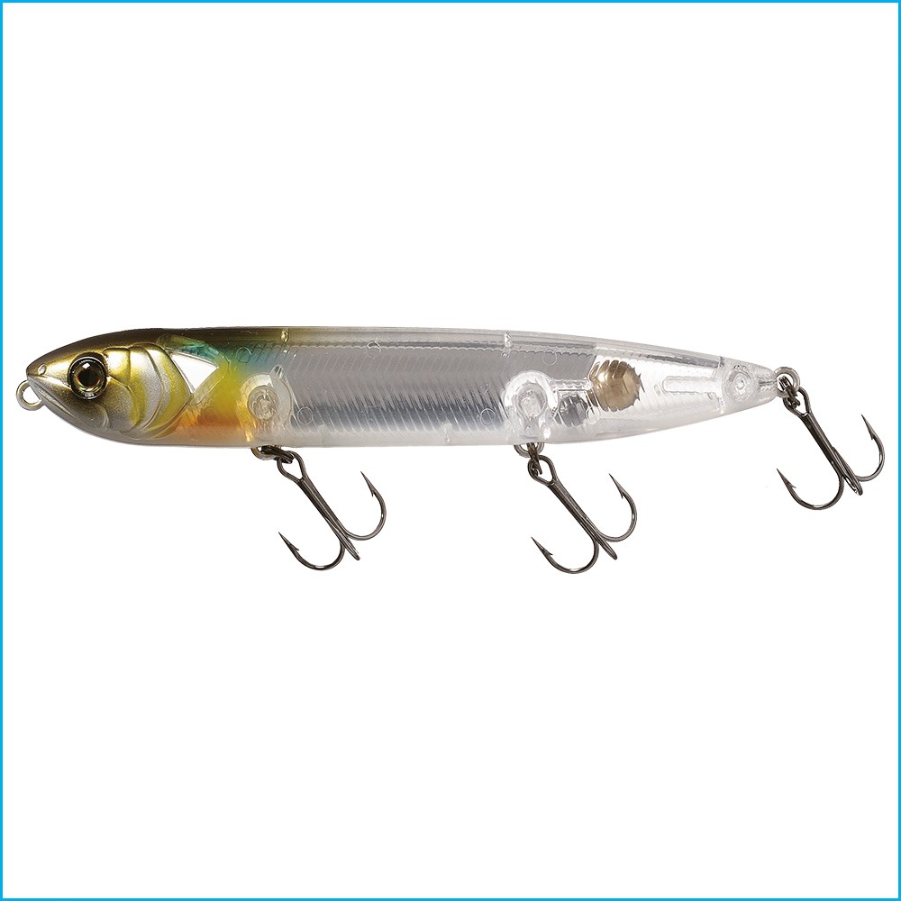 El cuerpo redondo y compacto genera una potente acción de dog-walk con un gran desplazamiento del agua. Gracias a las muescas alrededor de la zona de las agallas, se crean pequeñas burbujas de aire que proporcionan una atracción extra. Ideal para basses, lucios y grandes percas, pero también sorprendentemente eficaz para especies tropicales de agua dulce.