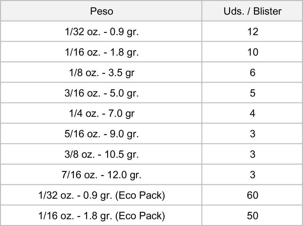Se aconseja utilizar el modelo de 1/32 oz. para montajes Texas ultra light.