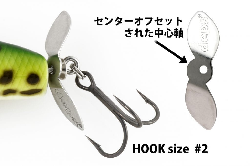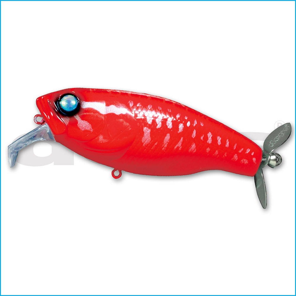 El movimiento acuático que produce el babero spike lip viene marcado por la hélice, todo esto crea una onda superficial compleja. Del tipo de material, de su espesor, de la forma del agujero, de las hélices tradicionales se ha iniciado el estudio, culminado con la realización del ‘Deps stainless original prop’ que permite obtener mejores resultados con respecto a otras hélices, gracias a que su centro está algo desplazado del eje central. El triple anzuelo posterior está en contacto con la hélice y crea un sonido metálico agradable. Además, sus flashes luminosos y sus salpicaduras de agua estimulan la persecución de los basses. Una modificación eficaz, pudiera ser, el grado de apertura y de torsión de la hélice……