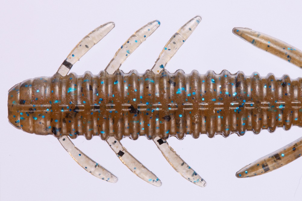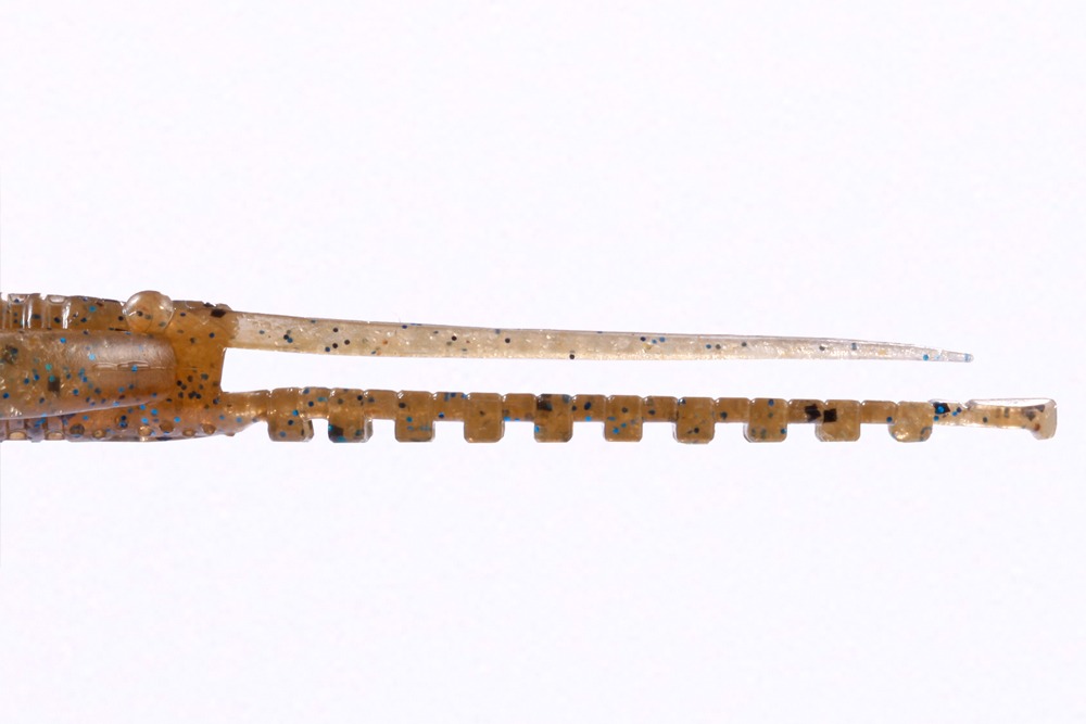 La cola fina y plana se ondula delicadamente con la vibración del revés y, al usar la caña, se mueve suavemente. La superficie irregular y el pequeño “recolector” de agua en la punta crean una vibración satisfactoria incluso al usar un plomo ultraligero de menos de 0,5 g en una caída lenta.