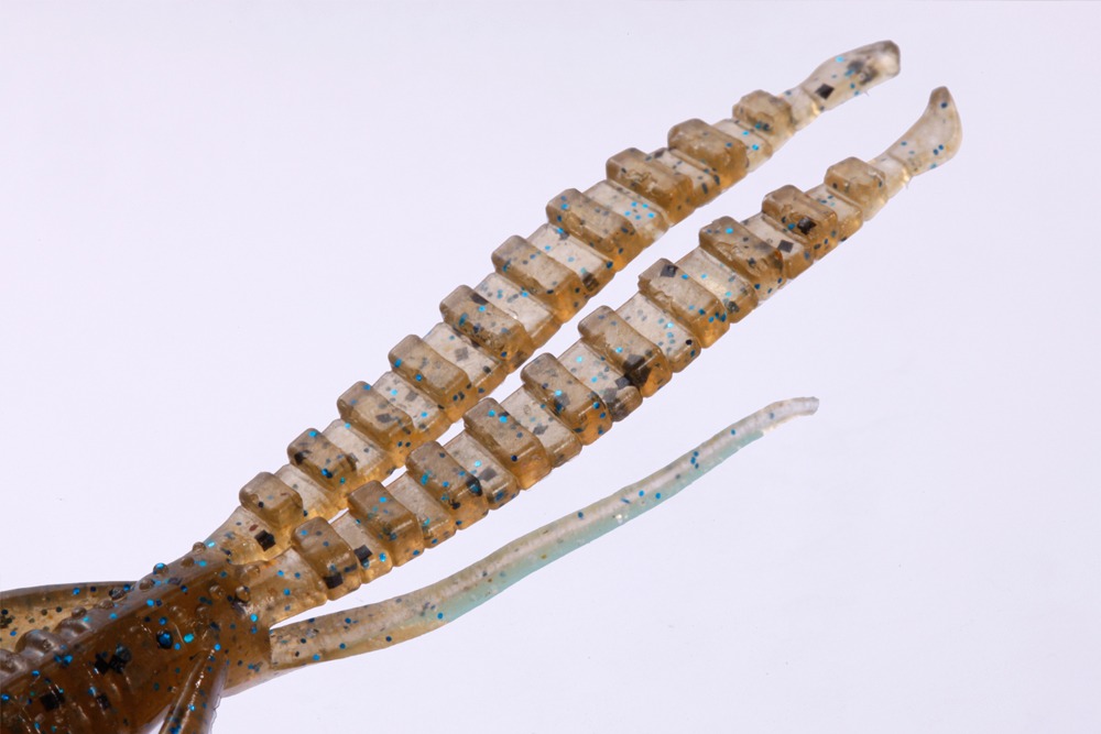Los bigotes y las colas planas no están dispuestos horizontalmente, sino verticalmente, con cierto espacio entre ellos. Esto le da al señuelo una apariencia esbelta, pero ambas partes se mueven de forma diferente al mismo tiempo, creando una excelente acción para incitar al pez a picar.