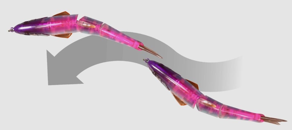 Este señuelo de tres articulaciones crea una dinámica acción de slalom en forma de S que cautivará a los grandes basses.