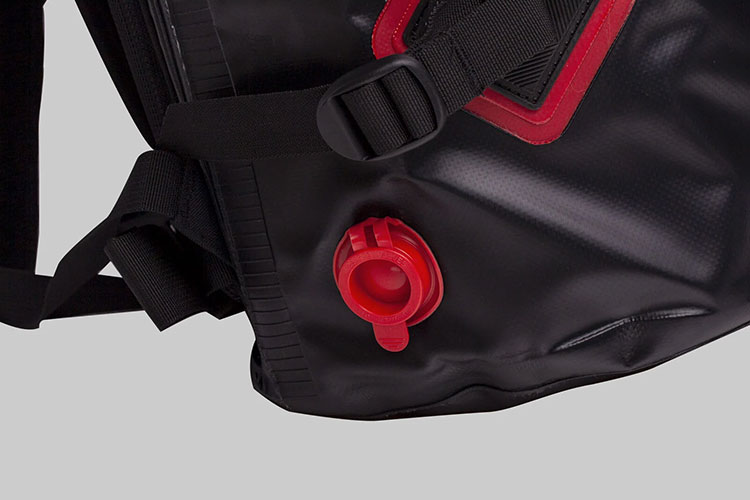 Tapón de drenaje: Permite que el agua drene al guardar objetos húmedos y que el aire escape al cerrar la solapa.