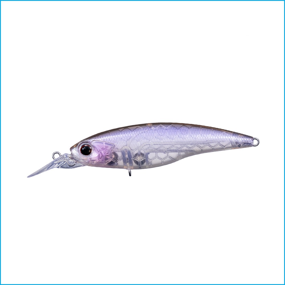 La fortaleza del shad es su silueta esbelta y su acción ajustada. Se puede usar en cualquier situación, y aunque el alcance promedio del shad es de alrededor de 2 m de profundidad, se ha buscado expandir el alcance aún más. Hablamos de un shad que se pueda recuperar a menos de 1 m de profundidad, sin sumergirse demasiado. Es un poco más grande que el corte alto convencional y se ha estucturado con anzuelos de #8. Se puede usar tanto con spinning como con finesse, y el objetivo es crear el tamaño más pequeño posible para que sea compatible para finesse en general. Los shads son extremadamente vulnerables al viento en comparación con los cranks redondos, por lo que después de pruebas comparativas con el mismo cuerpo, se eligió desplazar el centro de gravedad, lo que tiene más ventajas.