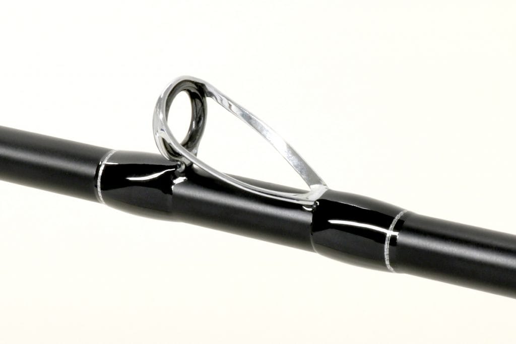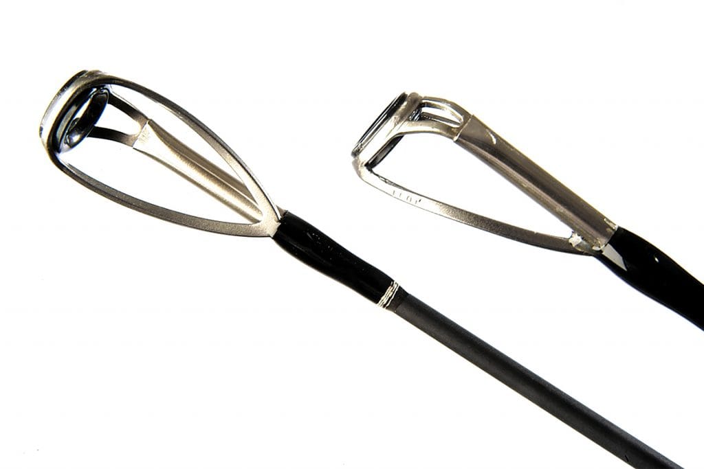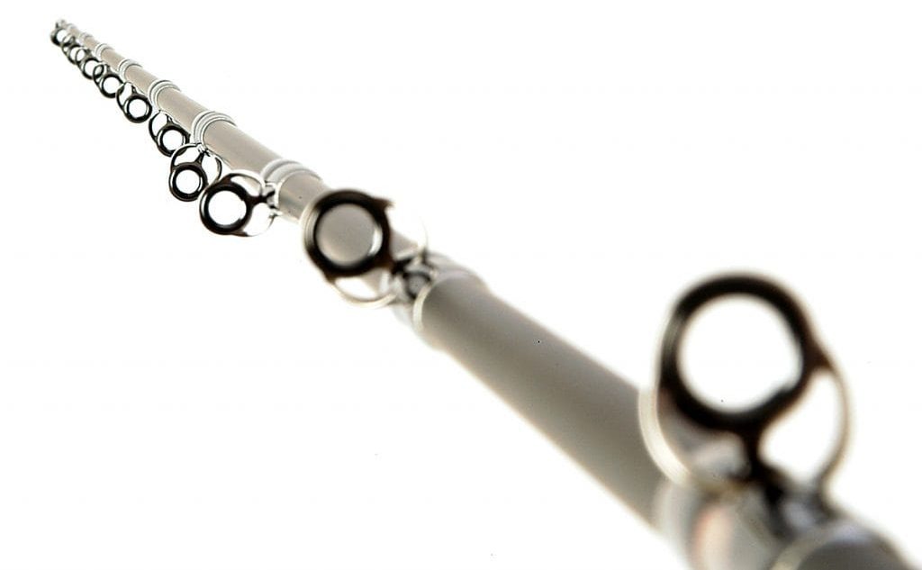 El double wrapping se utiliza en todas las guías excepto en la superior. Este robusto sistema de guías evita que los pies de las anillas dañen la caña, incluso durante flexiones extremas.