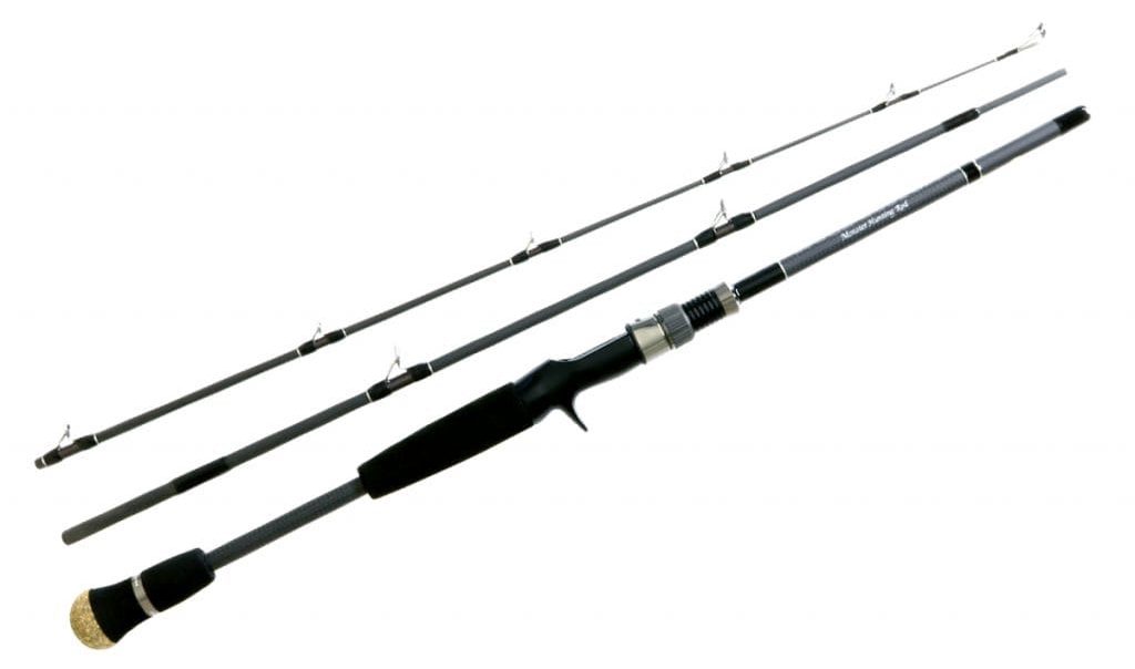 Una caña monstruosa equipada con especificaciones para la pesca del Monster Bass.