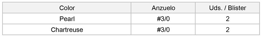 Anzuelo #3/0, excelente a la penetración. El material con el que está fabricado se ha incrementado en la cantidad para que el pescador lo regule a su conveniencia en su uso. El aumento en la cantidad de la malla hace el rol de mantener el movimiento bajo control, sin mencionar la mejora del poder de atracción. La punta del anzuelo siempre mantiene la postura hacia la parte superior.