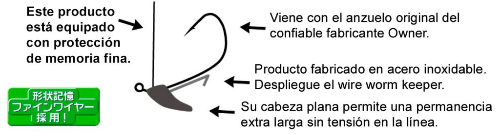 Además, su forma plana también le permite mantenerse derecho, es decir, con la posición del anzuelo hacia arriba, cuando se posa en el fondo.