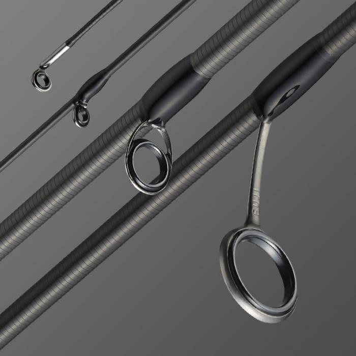 La caña está equipada con una guía Fuji SiC-S ligera y extremadamente fiable con marco de titanio. La guía superior no está roscada, sino que suaviza la separación, lo que proporciona una sensación de ligereza y agilidad en la punta.
