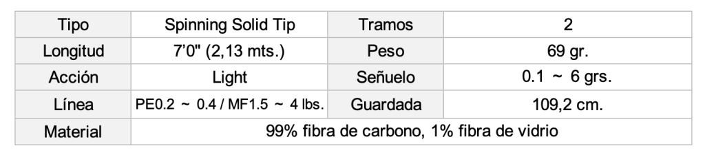 Este modelo ligero está diseñado para pescar a largas distancias y profundidades con aparejos de plomo medio de hasta 6 g. Combina una puntera sensible con una sección de vientre y talón potentes.