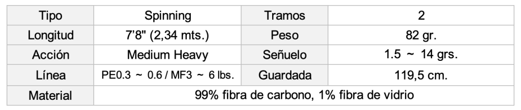 Este modelo de peso medio-pesado es compatible con una amplia gama de montajes y señuelos de hasta 14 g. Es una caña potente y versátil, lo suficientemente resistente como para manejar incluso los peces más grandes, a la vez que ofrece un excelente equilibrio entre ligereza y manejo delicado.