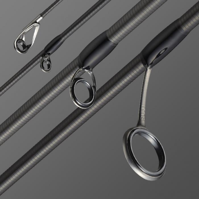 La caña está equipada con una guía Fuji SiC-S ligera y extremadamente fiable con marco de titanio. La guía superior no está roscada, sino que suaviza la separación, lo que proporciona una sensación de ligereza y agilidad en la punta.