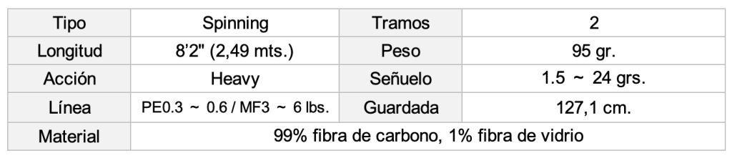 Este modelo robusto y de gran longitud es capaz de manejar aparejos de hasta 24 g. Además de ofrecer lances largos sin estrés y maniobrabilidad, también cuenta con un potente torque para controlar fácilmente la batalla con un pez grande cerca de un obstáculo.