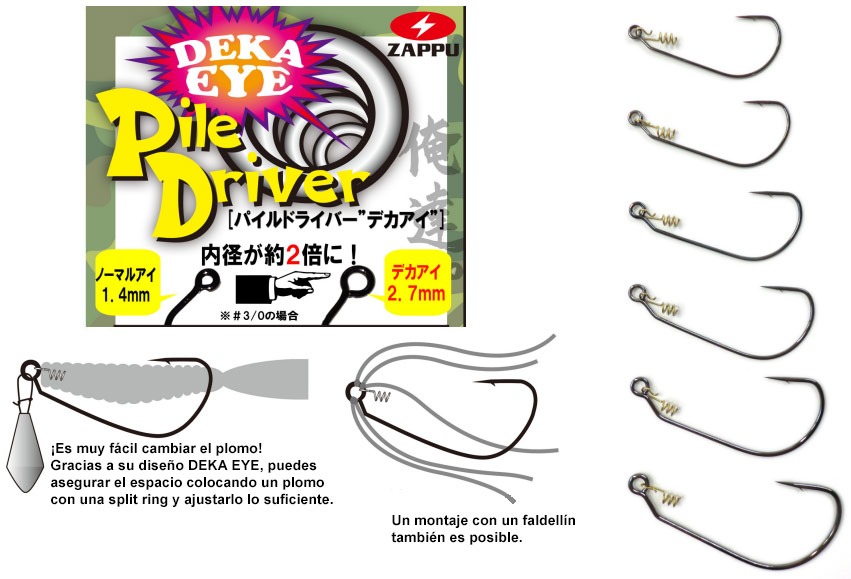 Quizás pienses: «Cuando el ojal se agranda, ¿qué puede pasar?». Con un ojal más grande, es más fácil atar la línea. Por supuesto, puedes ajustar el Pile Driver con una falda o cualquier otro ajuste que te dicte tu creatividad. Recomendamos combinarlo con el plomo Eye Shot. ¡Disfruta creando tu propio montaje!