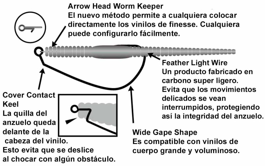 El material de carbono ultraligero con el que está fabricado, permite presentaciones más delicadas, que aprovechan la flotabilidad del vinilo. Nuestra innovación con un vértice con forma de punta de flecha, (Arrowhead Worm Keeper) te permite perforar directamente en vinilos delgados sin dañarlos.
