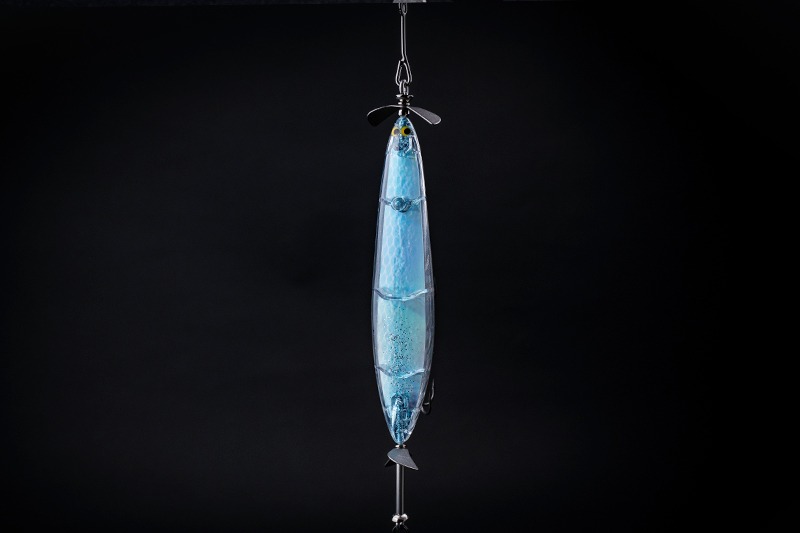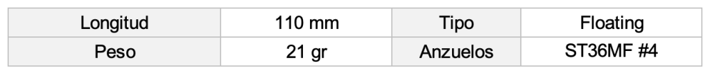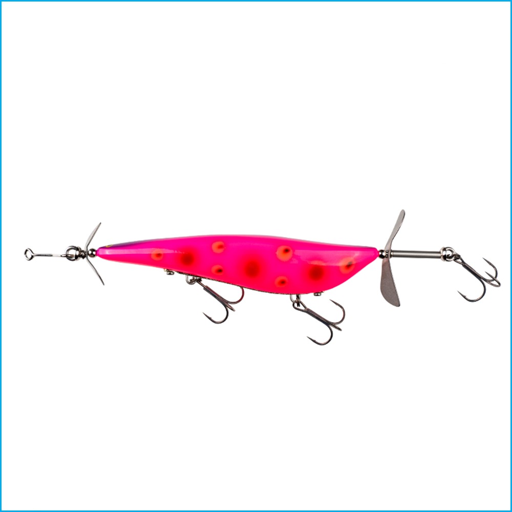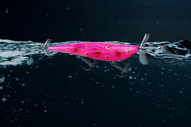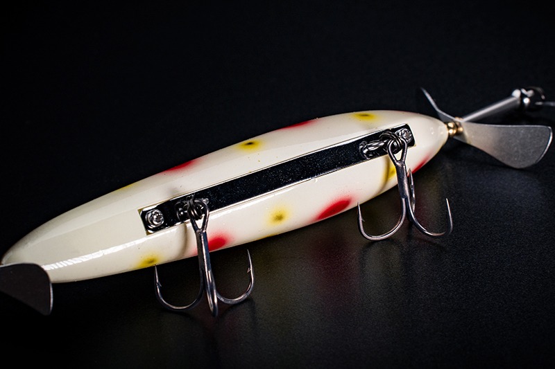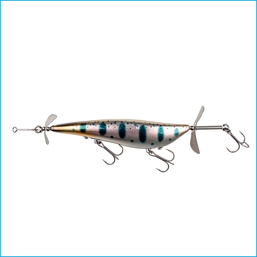 El peso en la parte exterior del cuerpo permite un centro de gravedad bajo, evitando que el señuelo se desvíe por la fuerza de la hélice.