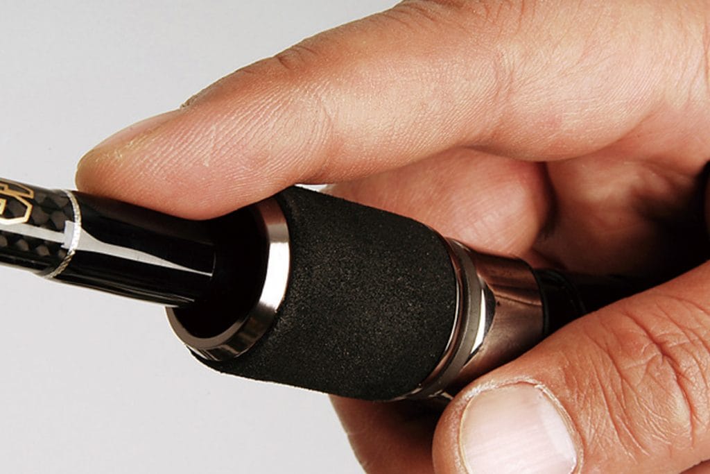 Junto con el cambio del portacarretes, la empuñadura delantera se ha aligerado y compactado. La sensación de acción directa, que se consigue colocando el dedo índice sobre el blank, permite un manejo más delicado de la caña, necesario para la pesca finesse.
