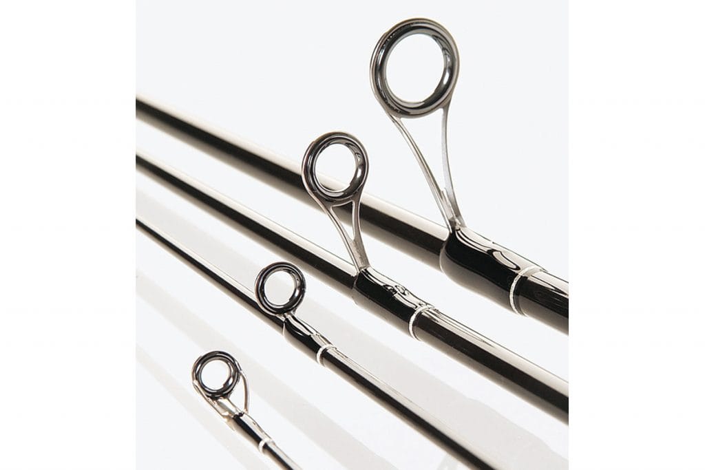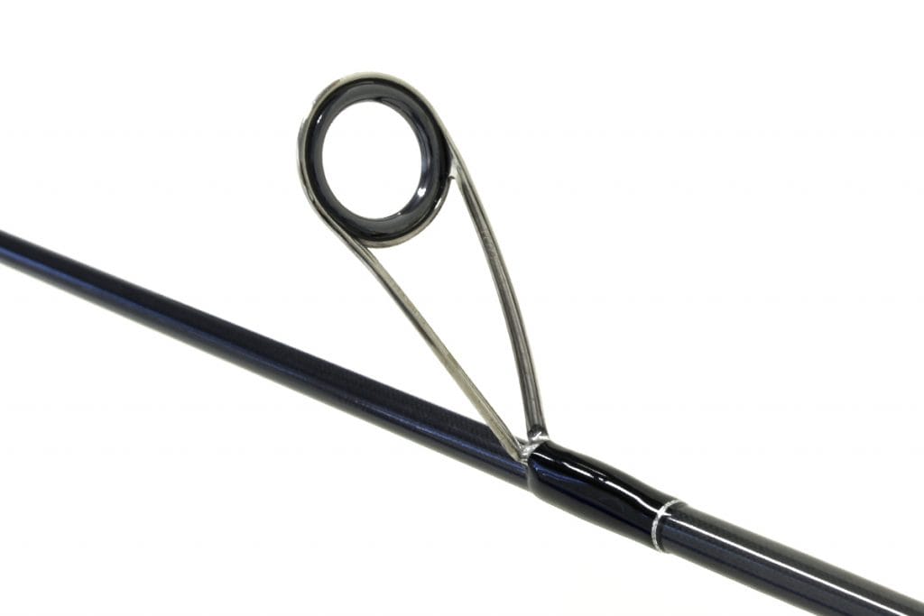 Las anillas SiC con marco de titanio de Fuji destacan por su ligereza y alta rigidez. Los modelos Rude Viper y Laser Whipper incorporan guías K para adaptarse a la versatilidad de las líneas trenzadas.