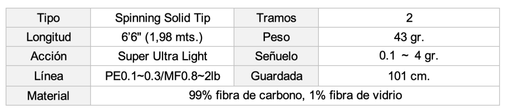 La sección de la puntera está equipada con una puntera sólida corta, de elasticidad media, con un diámetro de 0,6 mm que combina sensibilidad a la tensión y a la resonancia, a la vez que optimiza la flexibilidad. Esto evita automáticamente que el aparejo se mueva demasiado. Si bien es más larga que la Twiggy original, está configurada para facilitar una acción sutil sin dificultar la pesca.