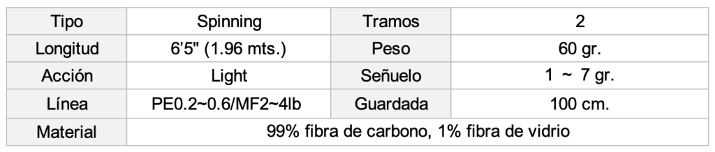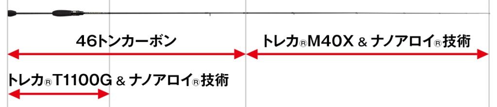Tras repetidos prototipos para combinar la alta respuesta operativa necesaria para la pesca de caída con el máximo nivel de sensibilidad, logramos una puntera tubular completa de 1,2 mm, un diseño delgado y cónico bajo y una construcción con materiales de altísima elasticidad. Además, al utilizar los materiales más modernos de alta resistencia y elasticidad, «TORAYCA® T1100G» y «TORAYCA® M40X», hemos logrado una robustez que no se puede lograr únicamente con materiales convencionales de alta elasticidad, sin sacrificar la capacidad de respuesta.