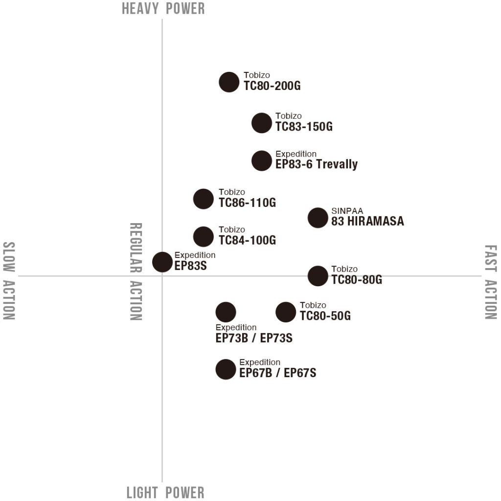 La TC86-110G es la mejor caña de lanzamiento de la serie Tobizo, que ejemplifica perfectamente el espíritu de «lanzar más lejos que nunca» de la serie Tobizo. La asombrosa distancia se logra mejor con señuelos en el rango de 110 gr. Perfecto para enfrentarse a todo tipo de tunoides, la gran elasticidad y el potencial de distancia de este modo la hacen ideal para alcanzar y someter incluso al poderoso atún, a pesar de su increíble fuerza y velocidad.