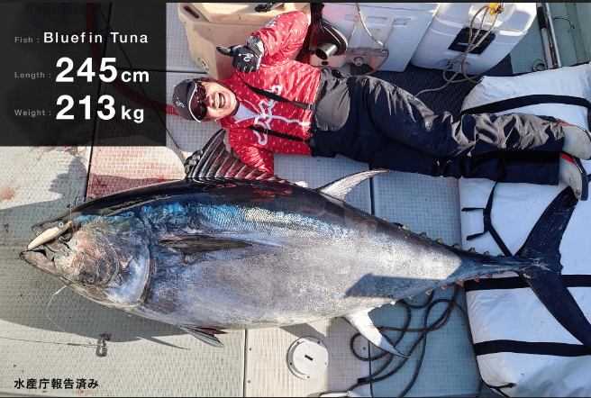 Esta caña te permite lanzar y controlar con precisión los señuelos necesarios (de 80g a 230g) según la situación, e incluso permite a los «pescadores de tamaño normal» «doblar la caña y levantar un atún de más de 200 kg».