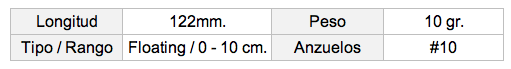 Mantiene un rango de superficie estable y es ideal para capturar peces pasto.