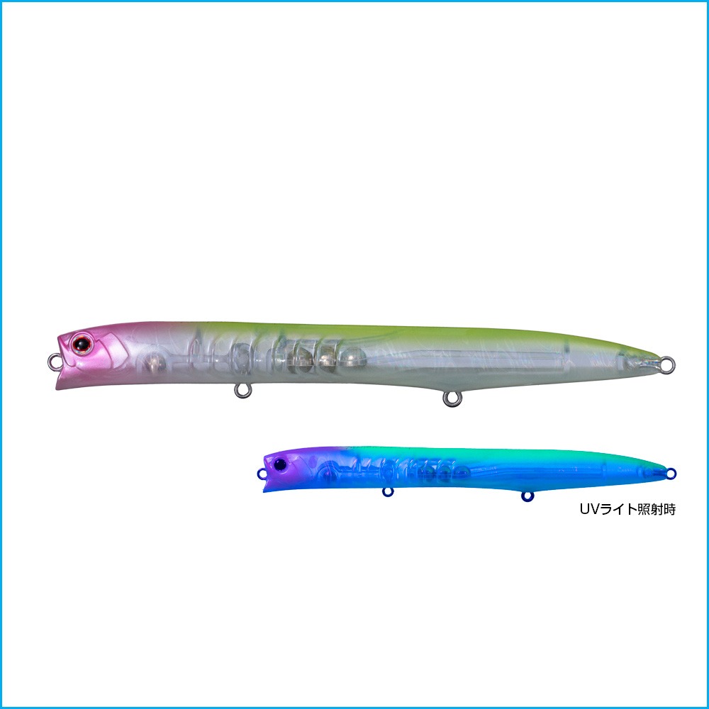 Los señuelos con siluetas delgadas y vibraciones débiles tienden a carecer de una sensación real. Para superar este inconveniente, nos esforzamos al máximo en diseño e ingeniería. El Tsukiyomi es un minnow flotante que ofrece a los pescadores una sensación de control sólida y un rendimiento general mejorado, lo que facilita su uso y captura. Al permitir que tanto la superficie receptora de agua en la boca como las nervaduras laterales con mayor superficie reciban las corrientes, el señuelo mantiene su acción de vibración débil a la vez que mejora la sensación de recogida. Captura con claridad información subacuática difícil de obtener con señuelos delgados y de baja resistencia, lo que le permite responder rápidamente a los cambios de velocidad de la corriente. Al lanzarlo lentamente, nada en forma de I, creando una estela desde la cabeza hasta la cola. Al ser atrapado por una corriente, cambia gradualmente la posición de la estela desde las nervaduras laterales hasta la cola, lo que resulta en una acción de balanceo. Su postura estable y horizontal y su acción débil atraen incluso a las lubinas más exigentes.